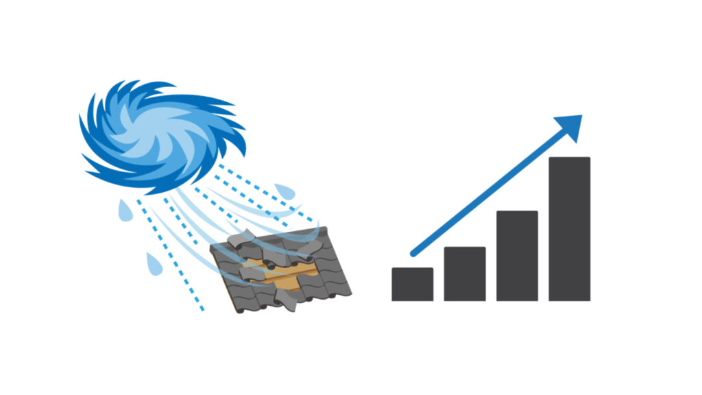 大型台風が住宅に与える被害はさまざまです。 屋根への被害: 風速が非常に強い台風では、屋根に大きな風圧がかかります。これにより、瓦や屋根材が飛散することがあります。一部はがれたり、吹き飛ばされたりすることがあります。 浸水被害: 台風に伴う豪雨や高潮により、住宅が浸水することがあります。地盤が飽和すると、地下室や低地の部分に水がたまり、建物内に浸水被害が広がります。 窓ガラスの破損: 高風速や飛来物により、窓ガラスが割れることがあります。これにより雨水や風が建物内に侵入する可能性があります。 樹木や物体の倒壊: 台風の風により、樹木や軽い物体が倒れ、建物に被害を与えることがあります。これにより、外壁や窓、庭などが損傷する可能性があります。 建物全体の構造被害: 台風による風圧や振動、風による吹き付け雨によって、建物の構造に損傷が生じることがあります。これは耐震性や強度に影響を与える可能性があります。 台風による被害から身を守るためには、適切な防災対策を講じ、住宅の耐久性を高めることが重要です。